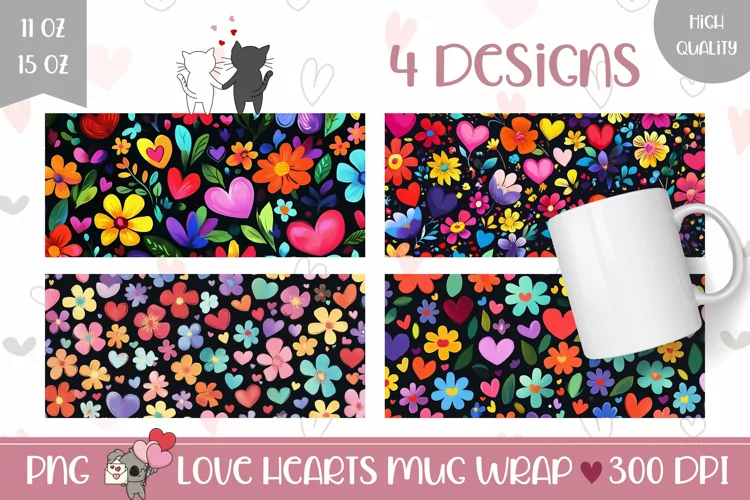 Coffee Mug Template Love Mug Design Summer Mug Valentines Mug Design Spring Sublimation Designs Floral Mug Flowers Mug Sublimation Love Hearts Mug Wrap Love Coffee Mug Designs Cartoon Flowers Png