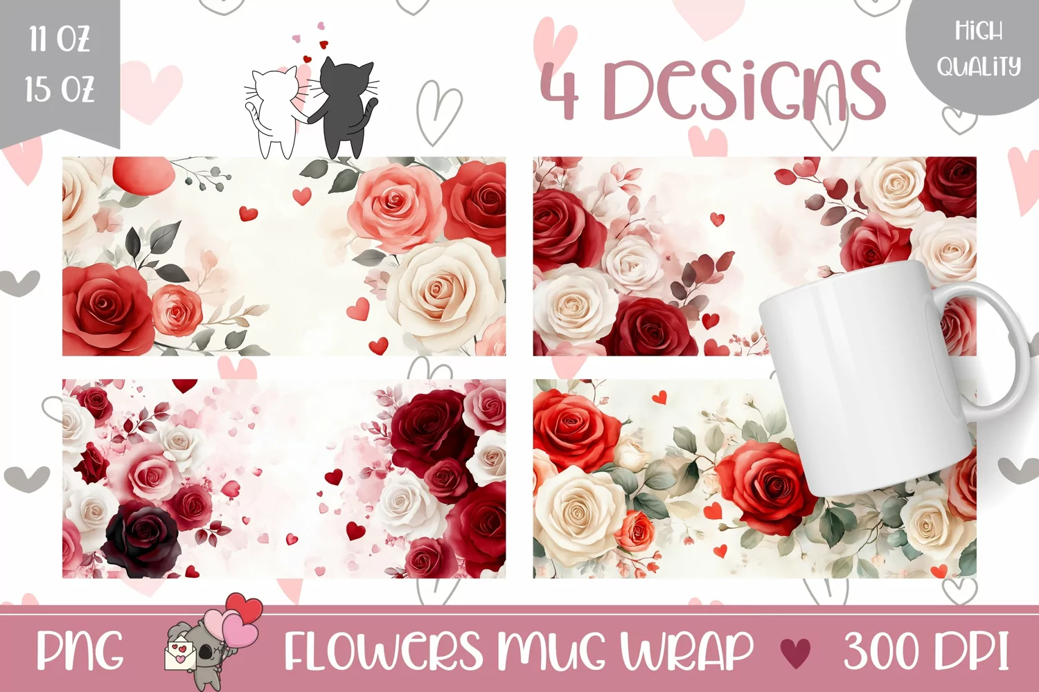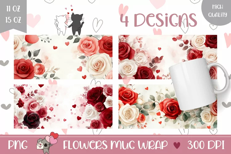 Coffee Mug Template Floral Mug Sublimation Valentines Mug Design Valentine's Day Sublimation Designs Spring Mug Wrap Happy Valentines Day Mugs Valentines Day Coffee Mug Designs Love Heart Mug Wrap Sublimation Watercolor Flowers Mug Design Watercolor Hearts Mug Wrap