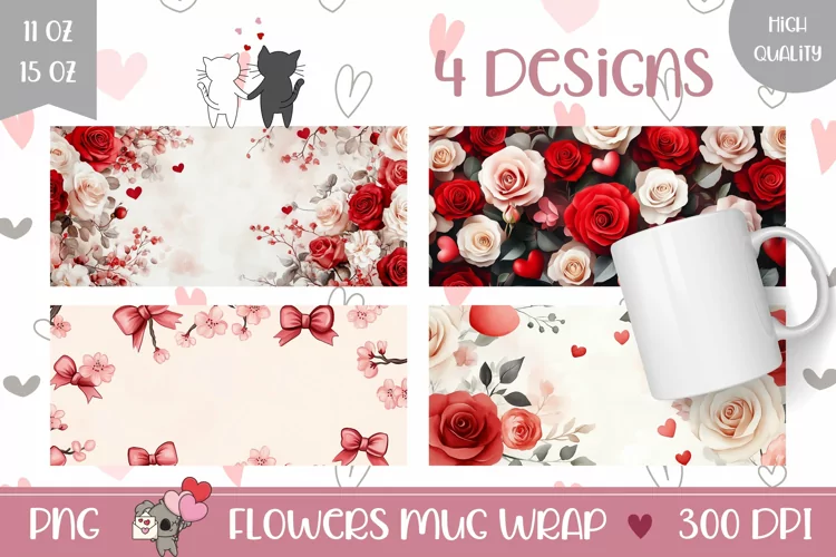 Coffee Mug Template Floral Mug Sublimation Valentines Mug Design Valentine's Day Sublimation Designs Spring Mug Wrap Happy Valentines Day Mugs Valentines Day Coffee Mug Designs Love Heart Mug Wrap Sublimation Watercolor Flowers Mug Design Watercolor Hearts Mug Wrap