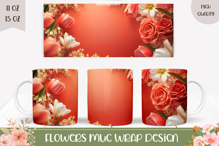 Flowers Print Coffee Mug Design Blooming Flowers Spring Flowers Png Summer Mug Sublimation Flowers Sublimation Design Floral Mug Wrap Spring Mug Template Flowers Mug Design Botanical Mug Wrap