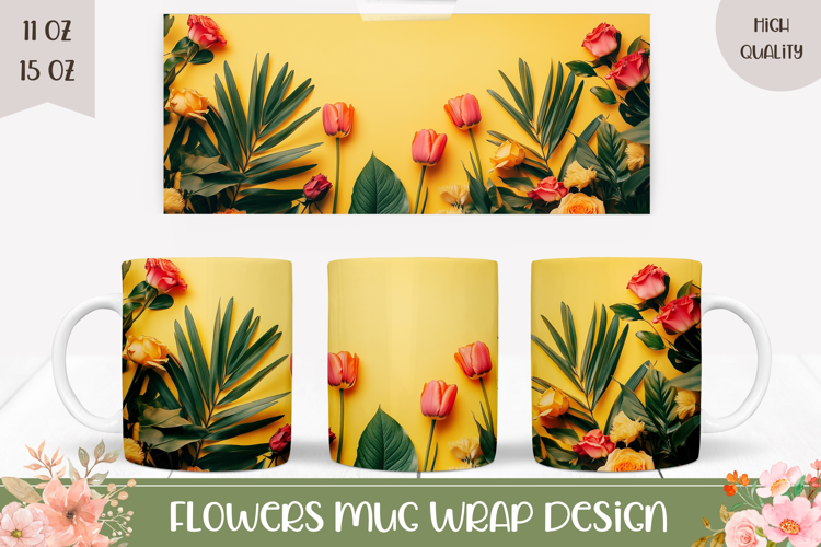 Similar Design Products to Summer Flowers Mug Wrap, Tropical Mug, Tulips PNG