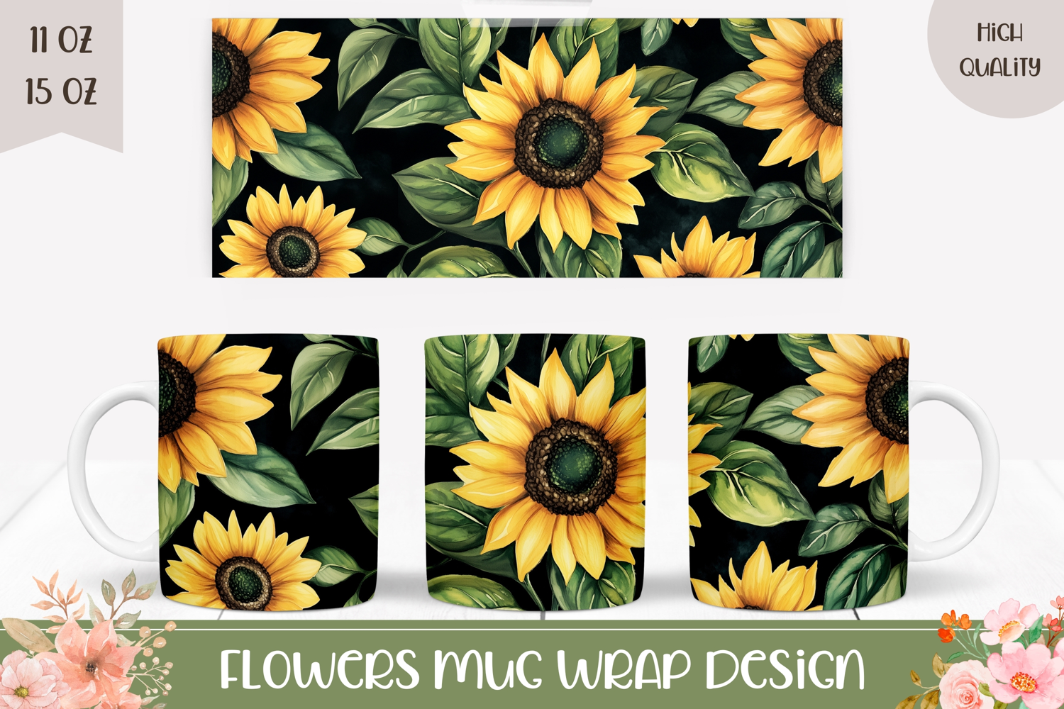 Similar Design Products to Cartoon Sunflowers Mug Wrap Design, Flowers Mug Design