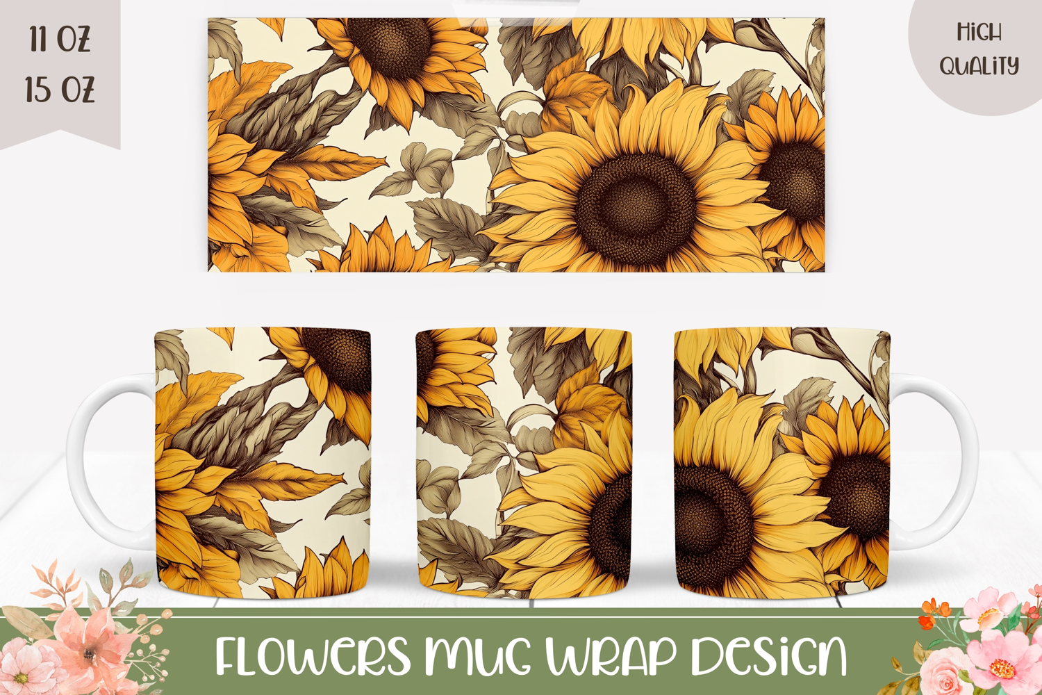 Sunflowers Mug Wrap Design, Vintage Sunflowers Sublimation example image 1