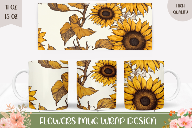 Sunflower Mug Template, Vintage Sunflowers Sublimation PNG example image 1