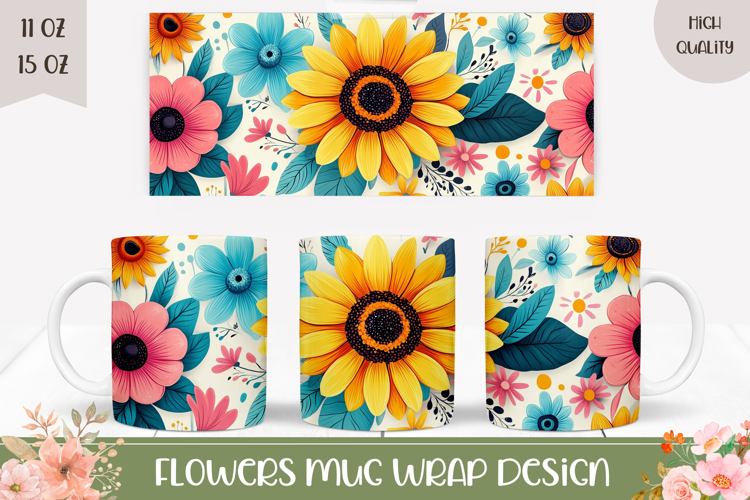 Similar Design Products to Sunflowers Mug Sublimation, Cartoon Flowers Mug Wrap