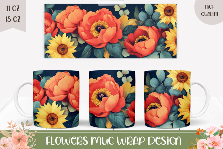 Flowers Print Coffee Mug Design Blooming Flowers Spring Flowers Png Summer Mug Sublimation Flowers Sublimation Design Floral Mug Wrap Spring Mug Template Flowers Mug Design Botanical Mug Wrap
