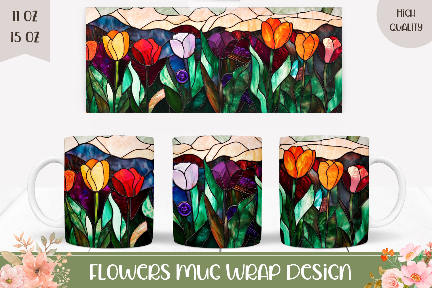 Flowers Mug Wrap, Stained Glass Tulips Mug Template example image 1