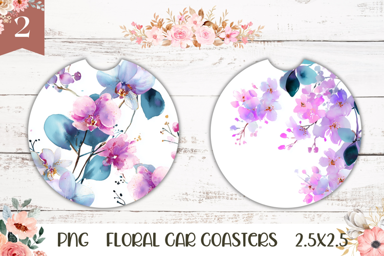 Flowers Car Coaster Sublimation Designs. Easy to size to your coasters diameter for sublimation.