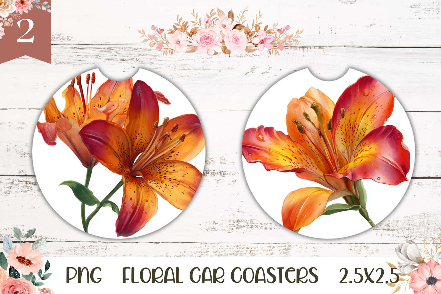 Lily Flowers Car Coasters, Cute Flowers Round Coaster Design example image 1