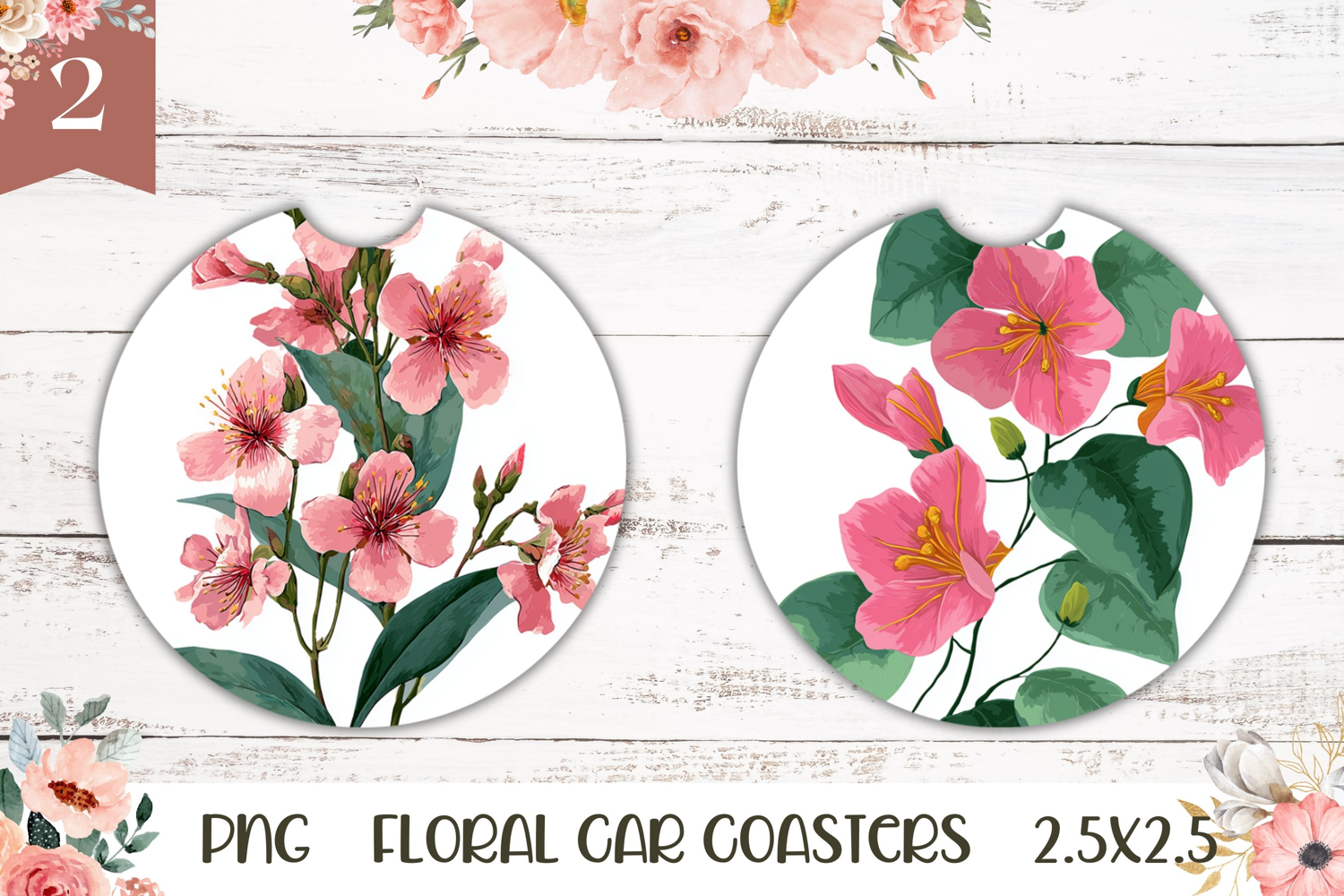Pink Flowers Car Coasters, Summer Round Coaster Sublimation example image 1