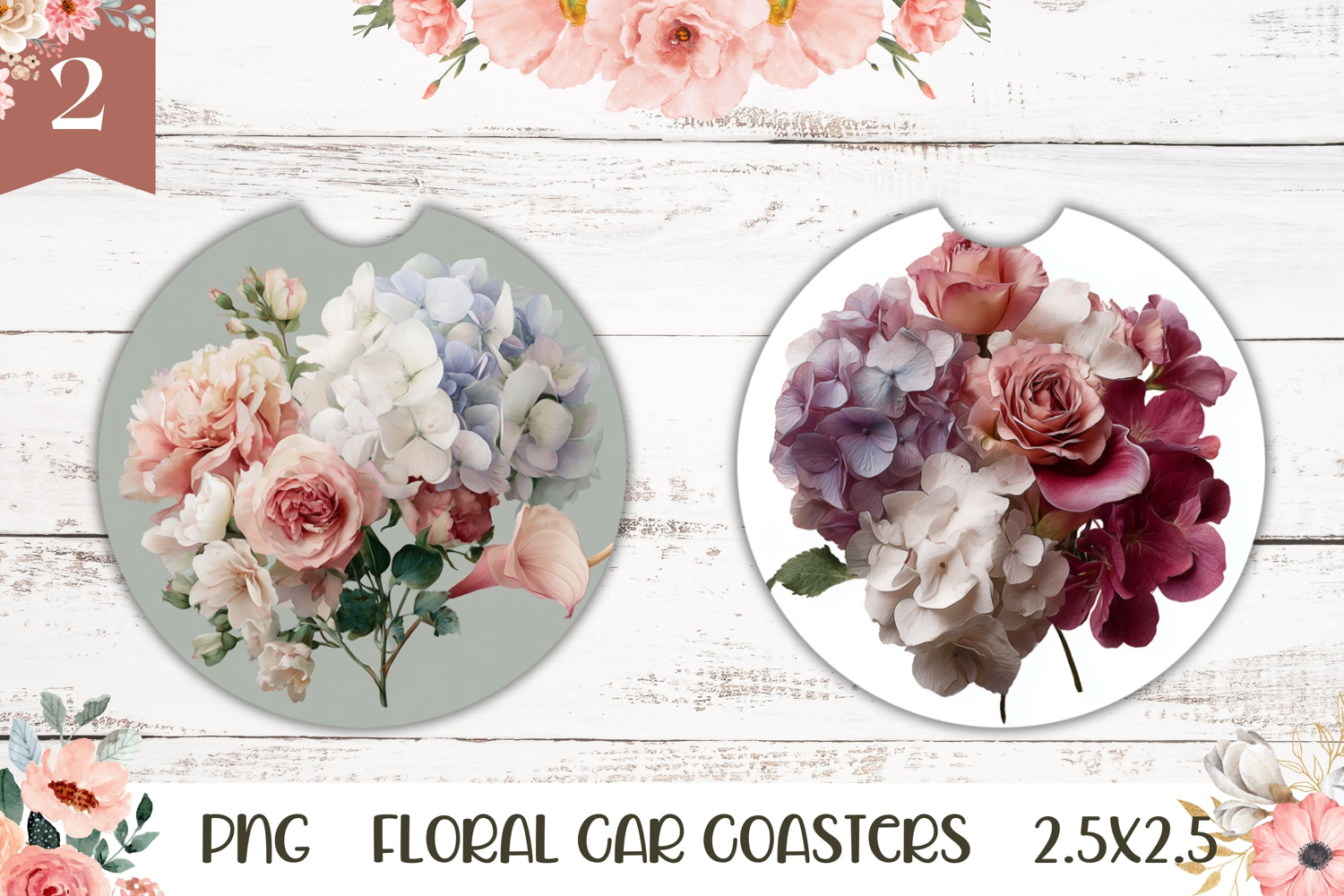 Flowers Car Coaster Sublimation Designs. Easy to size to your coasters diameter for sublimation.