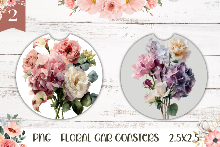 Flowers Car Coaster Sublimation Designs. Easy to size to your coasters diameter for sublimation.