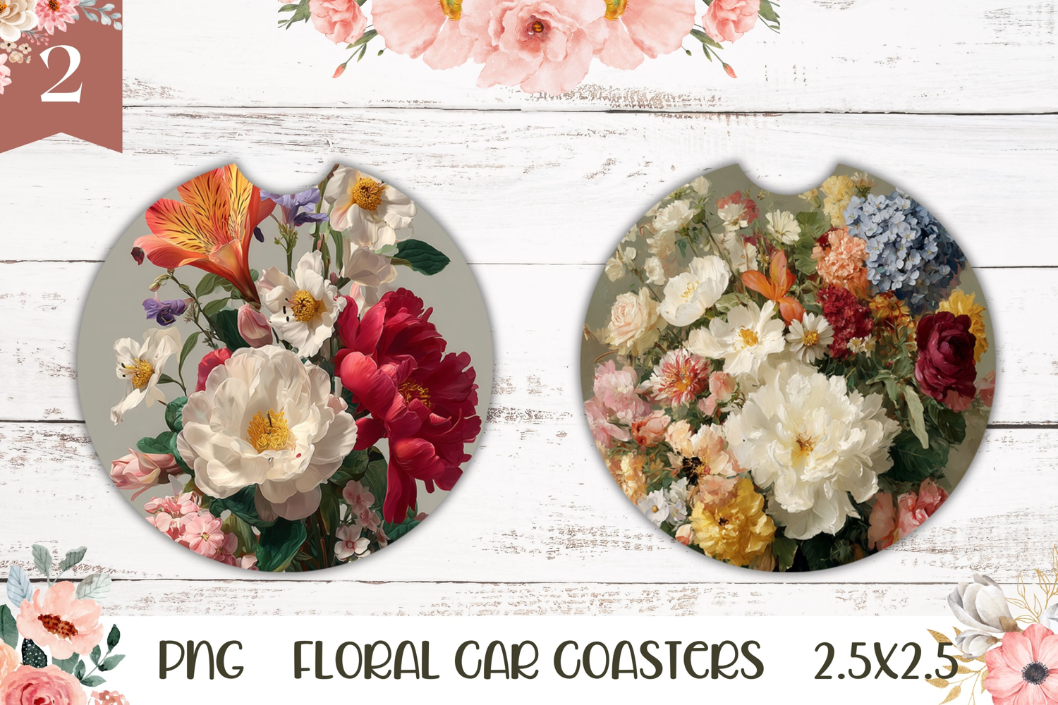 Art Flowers Car Coaster Template, Floral Coasters PNG example image 1
