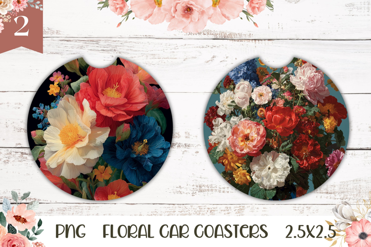 Flowers Car Coaster Sublimation Designs. Easy to size to your coasters diameter for sublimation.