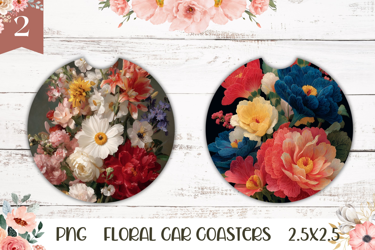 Flowers Car Coaster Sublimation Designs. Easy to size to your coasters diameter for sublimation.