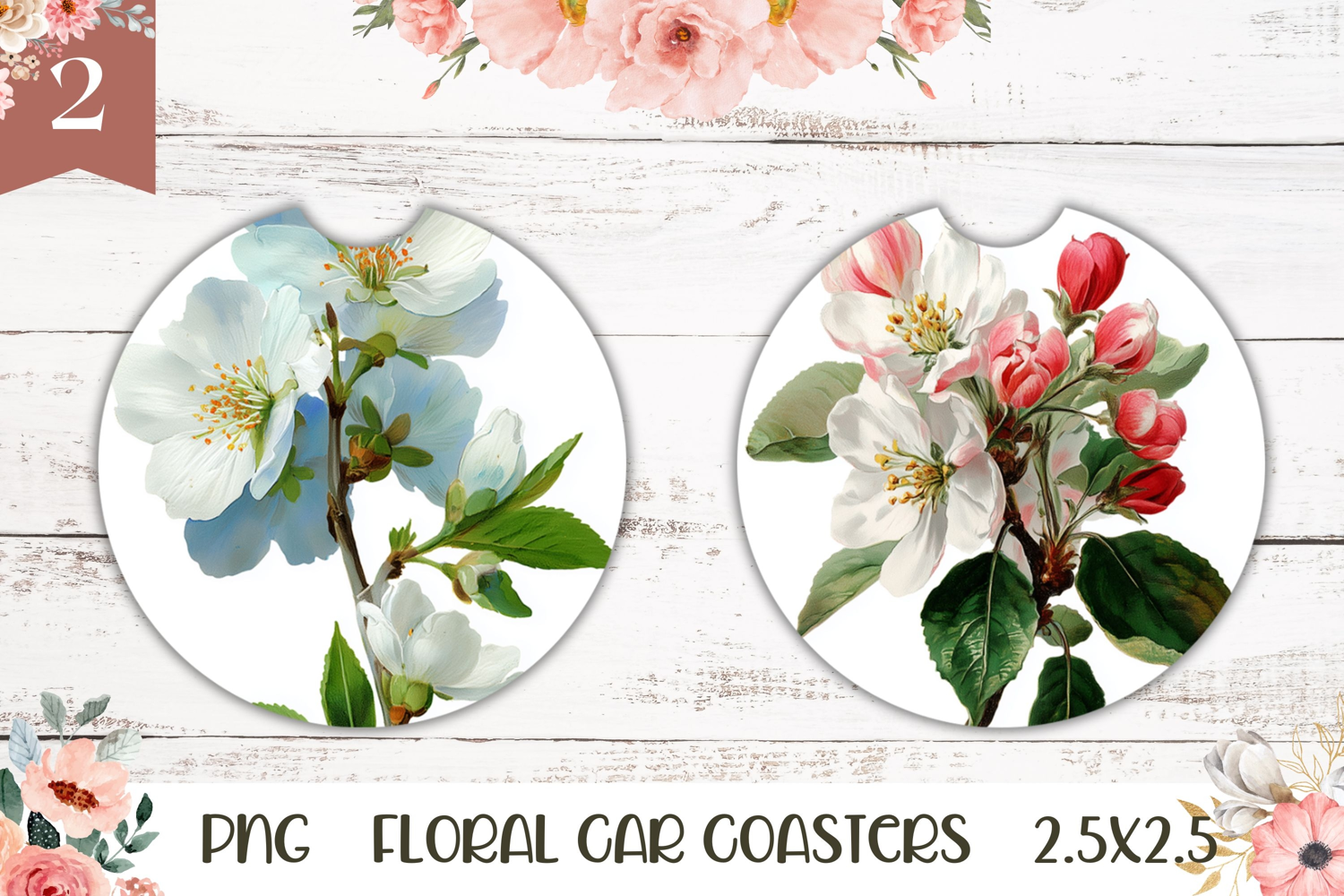 Flowers Car Coaster Template, Watercolor Flowers Coasters