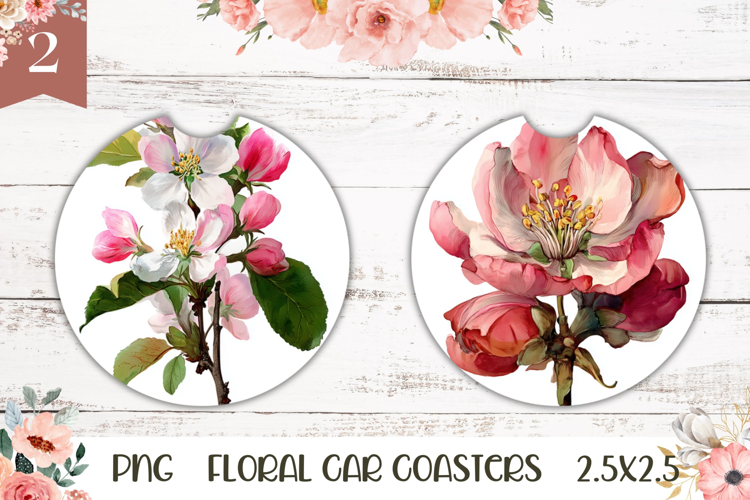 Floral Car Coaster Template, Watercolor Flowers Coasters example image 1