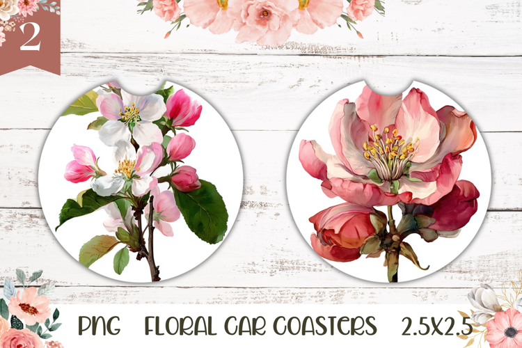 Flowers Car Coaster Sublimation Designs. Easy to size to your coasters diameter for sublimation.