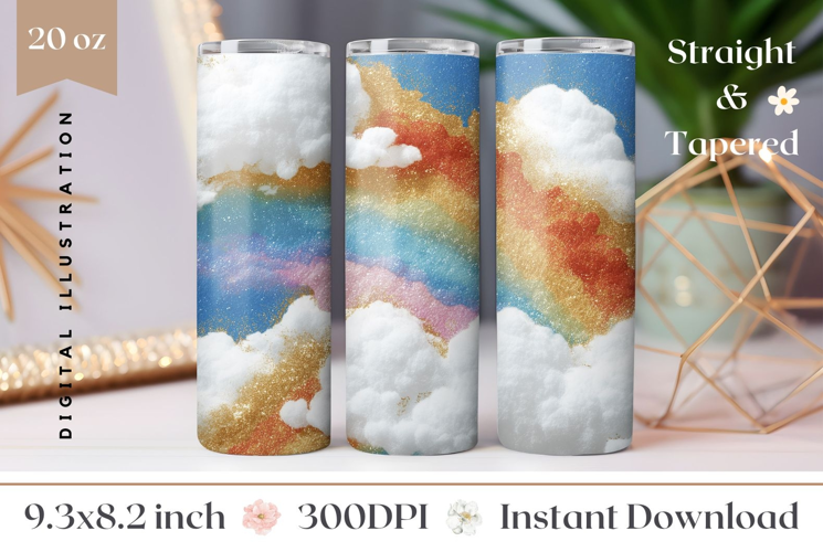 Glitter Rainbow Tumbler Wrap, Clouds Tumbler Template example image 1