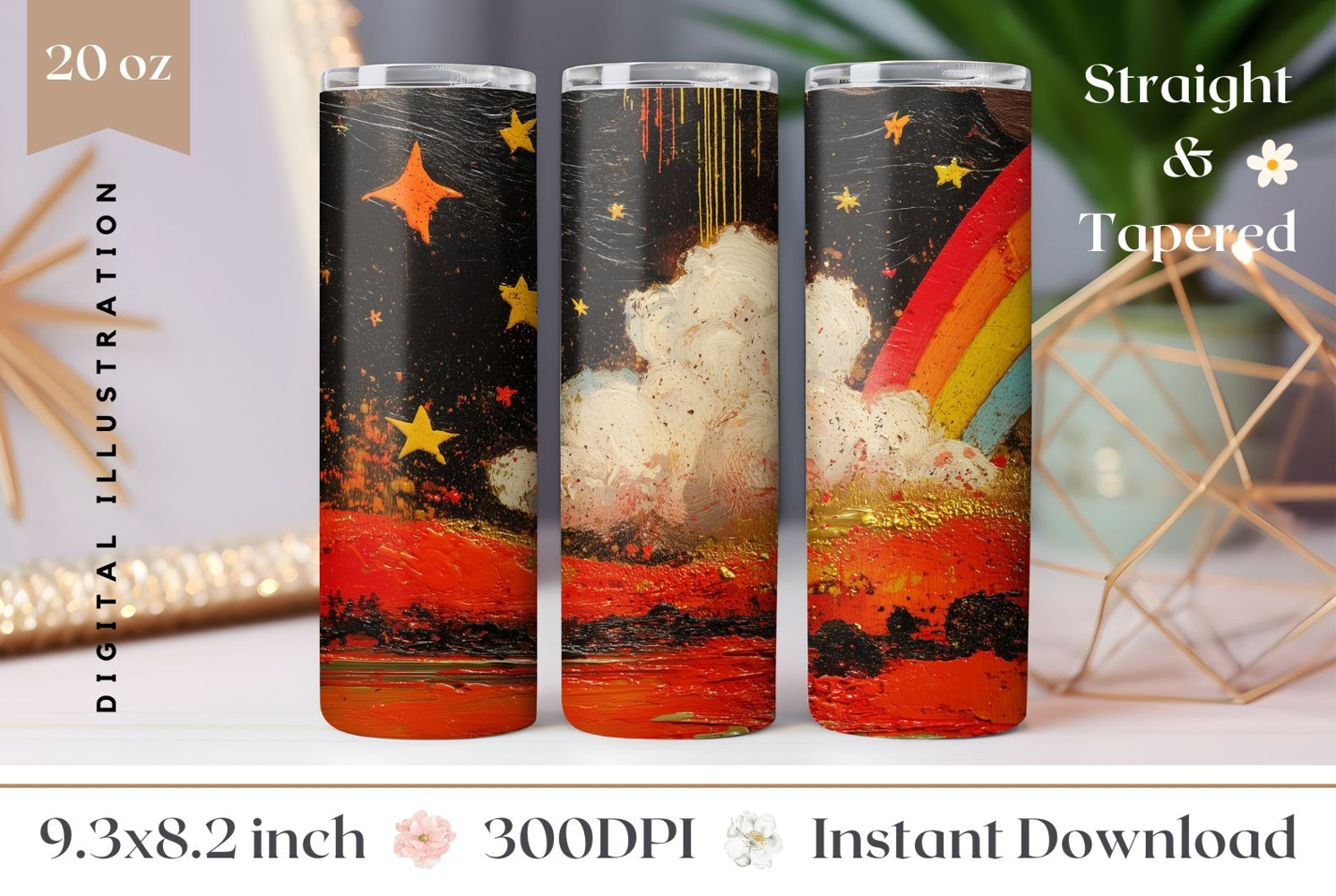 Rainbow Tumbler Wrap Design, Night Sky Tumbler Sublimation example image 1