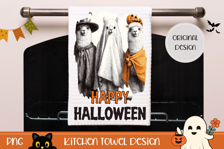 Happy Halloween Kitchen Decoration Kitchen Towel Sublimation Halloween Kitchen Towel Halloween Sublimation Towel Lama Sublimation Png Fantasy Kitchen Towel Cartoon Lama Towel Design Lama Kitchen Towel Png Halloween Lama Png