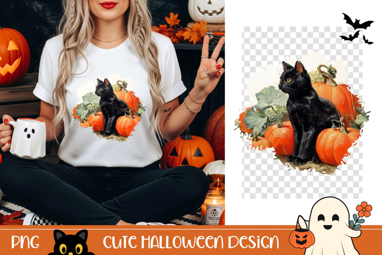 Halloween Black Cat PNG, Vintage Halloween Cat T-Shirt PNG example image 1