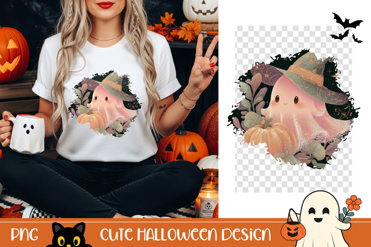 Halloween Glitter Ghost PNG, Cute Halloween Ghost T-Shirt example image 1