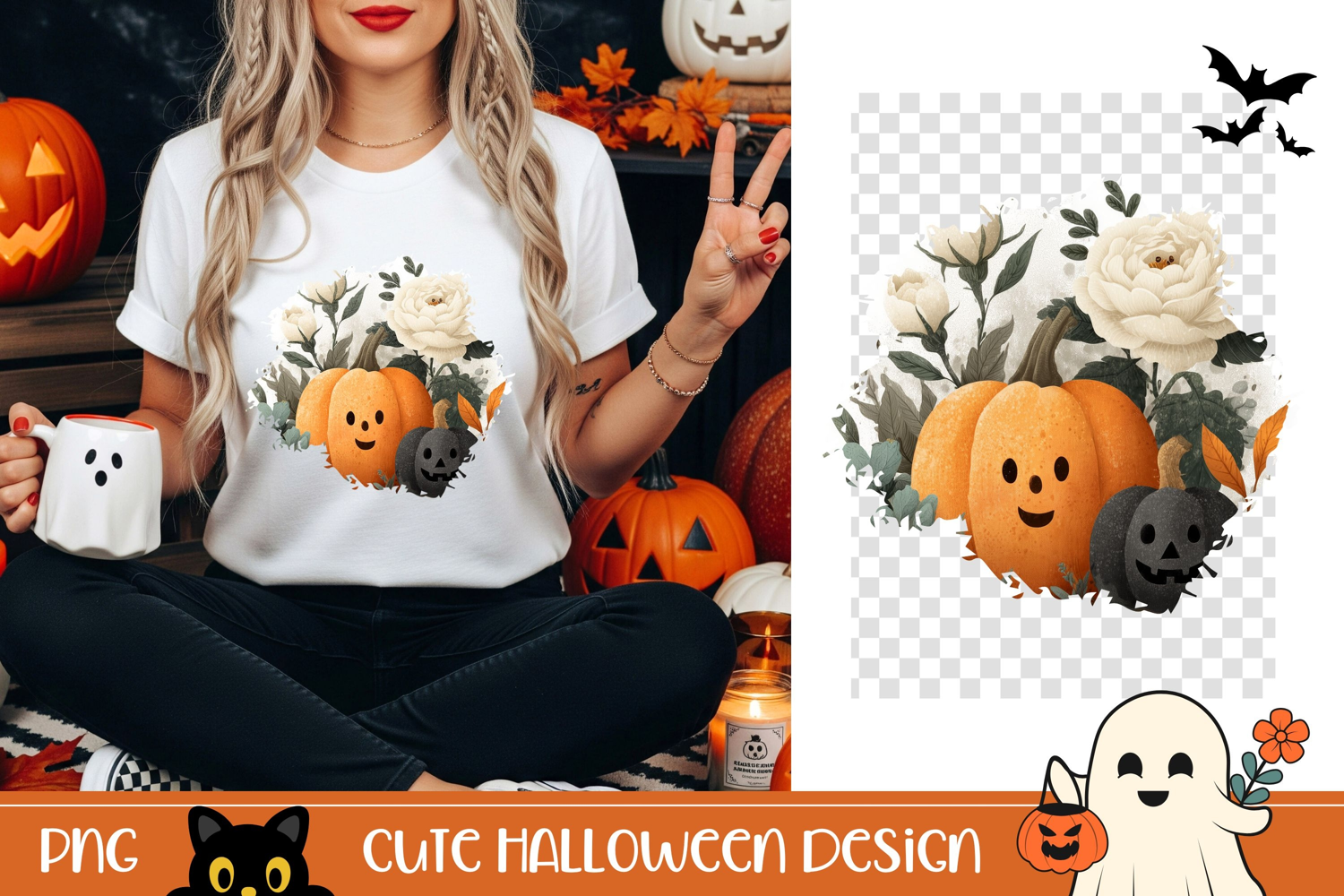 Halloween Pumpkin PNG, Floral Halloween Pumpkins T-Shirt PNG example image 1