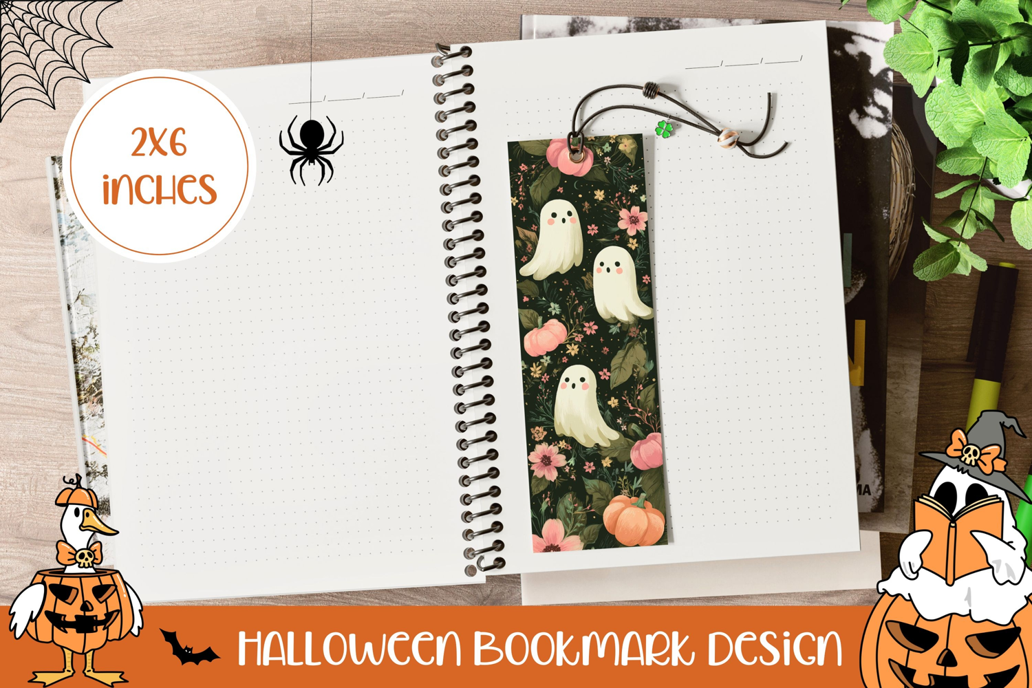 Floral Halloween Bookmark Design, Cartoon Ghost Bookmark example image 1