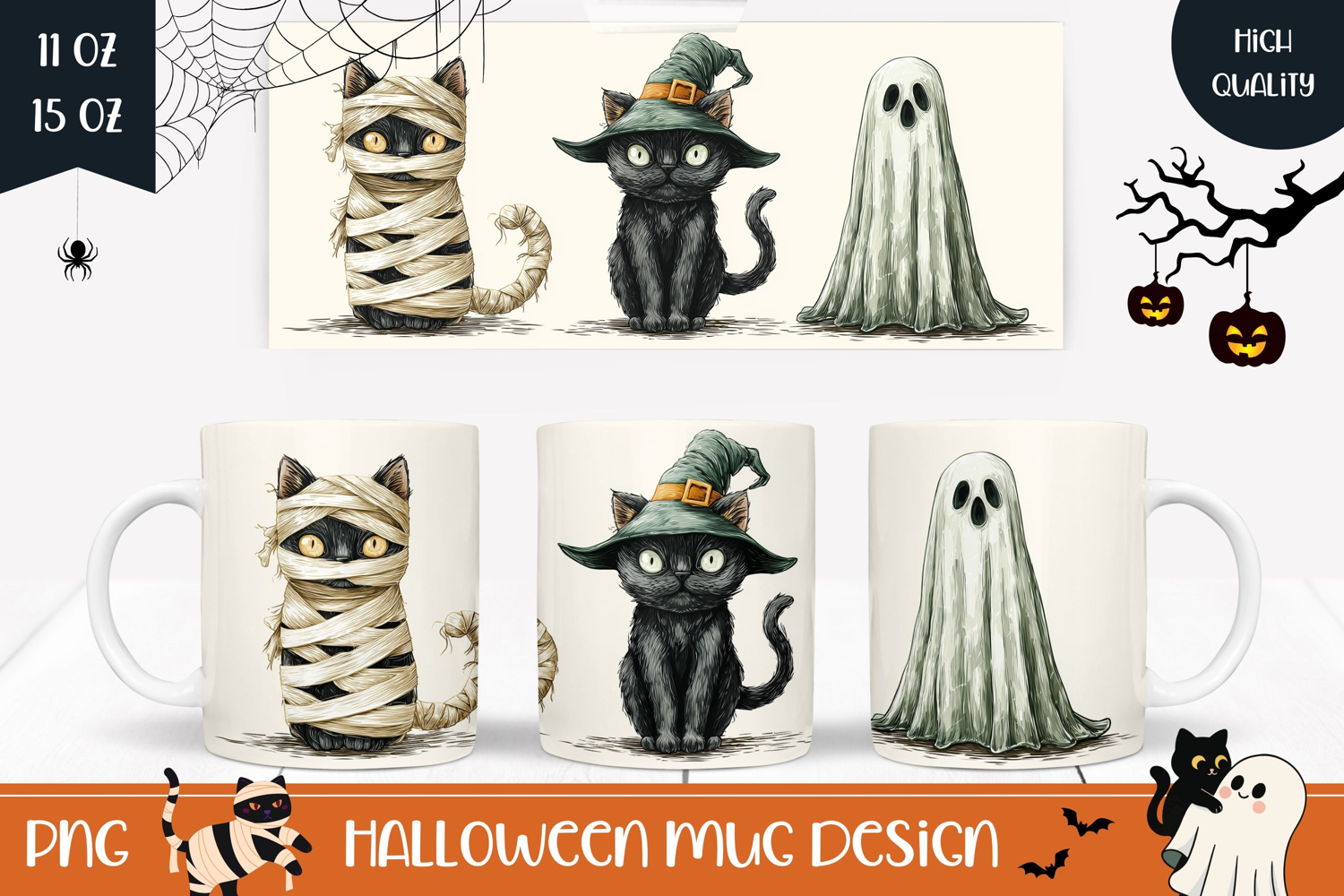 Halloween Cats Mug Wrap, Halloween Monsters Mug Template example image 1