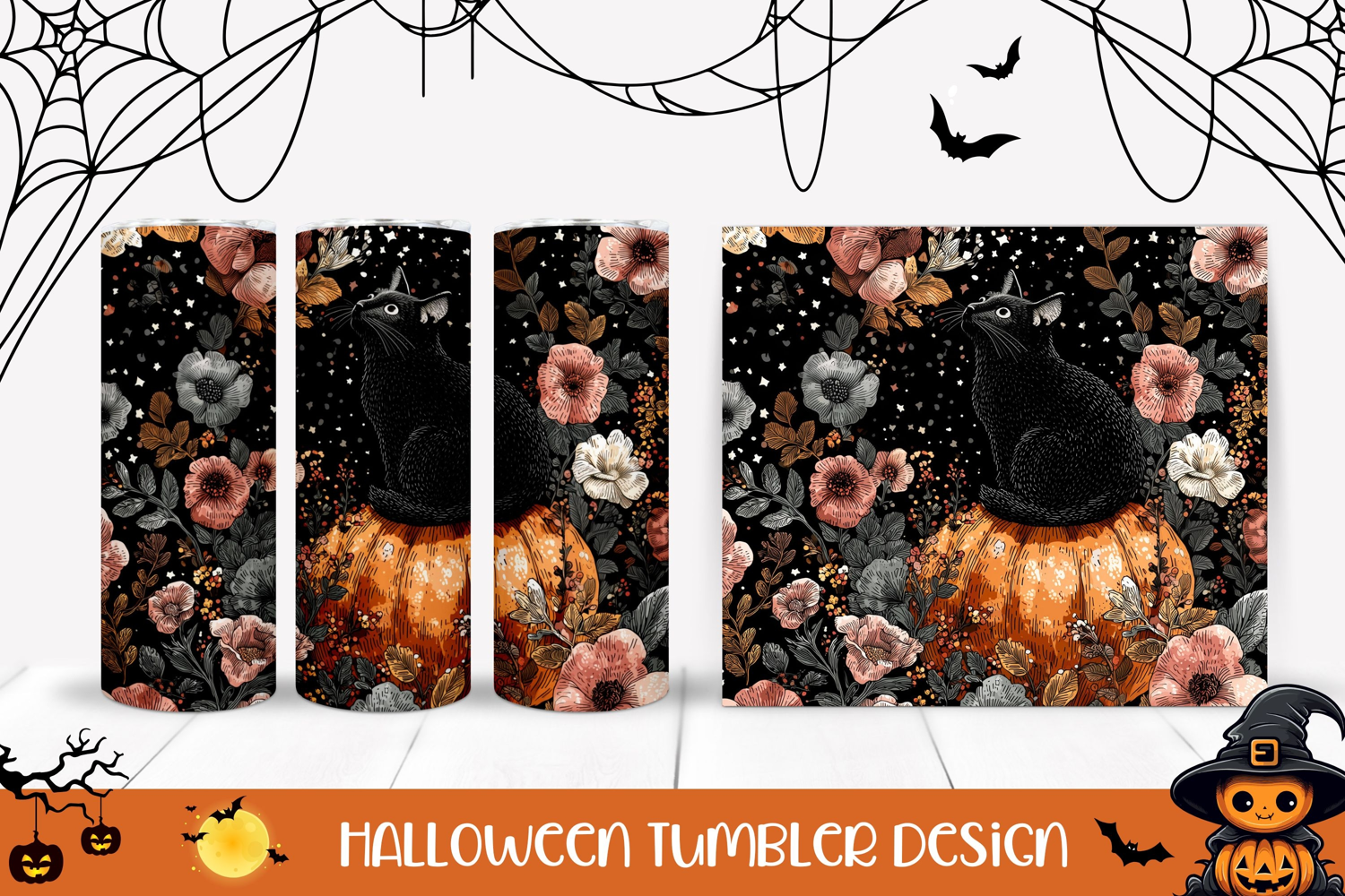 Similar Design Products to Cartoon Halloween Cat Tumbler, Halloween Pumpkin Tumbler