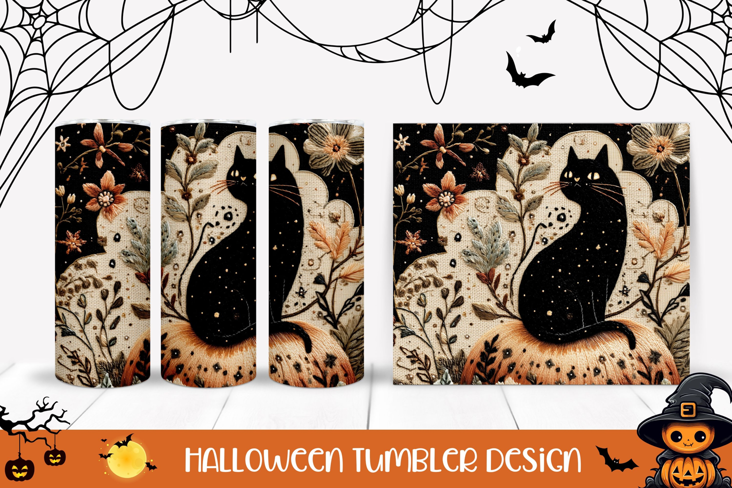 Knitted Halloween Black Cat Tumbler, Fall Pumpkin Tumbler example image 1