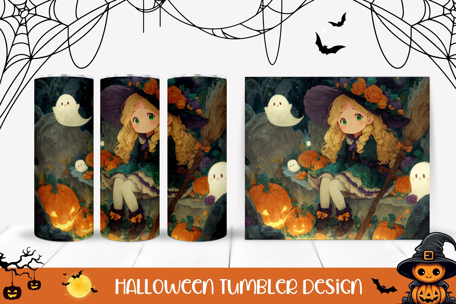 Kawaii Halloween Witch Tumbler, Fall Pumpkins Tumbler example image 1