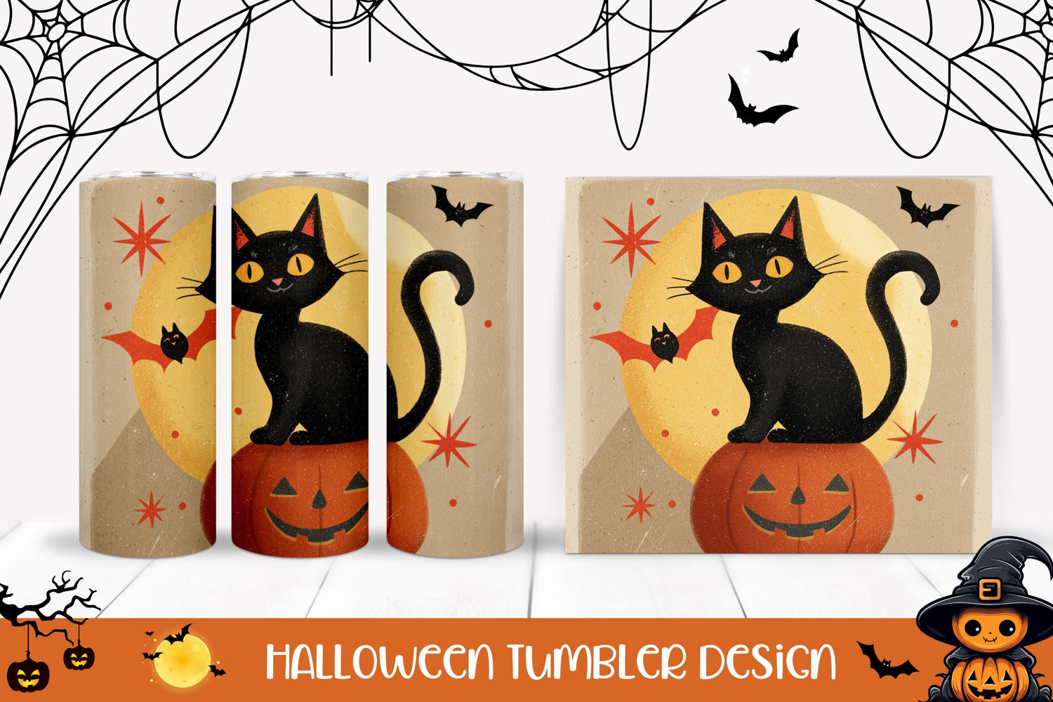 Vintage Halloween Cat Tumbler, Cartoon Bats Tumbler Wrap example image 1