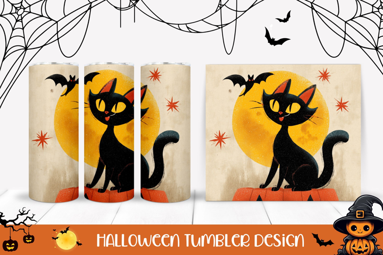 Vintage Halloween Black Cat Tumbler, Halloween Bats Tumbler example image 1