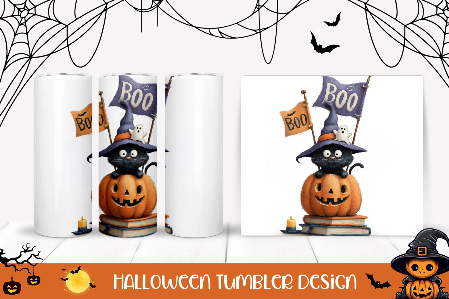 Similar Design Products to Boo Halloween Cat Tumbler, Cartoon Pumpkin Tumbler Wrap