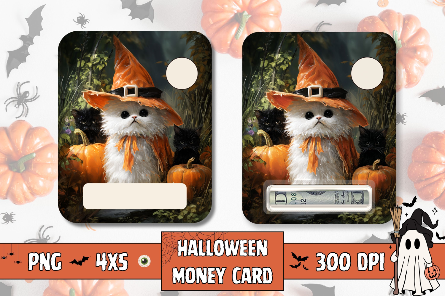 Art Halloween Cat Money Card, Printable Halloween Design example image 1