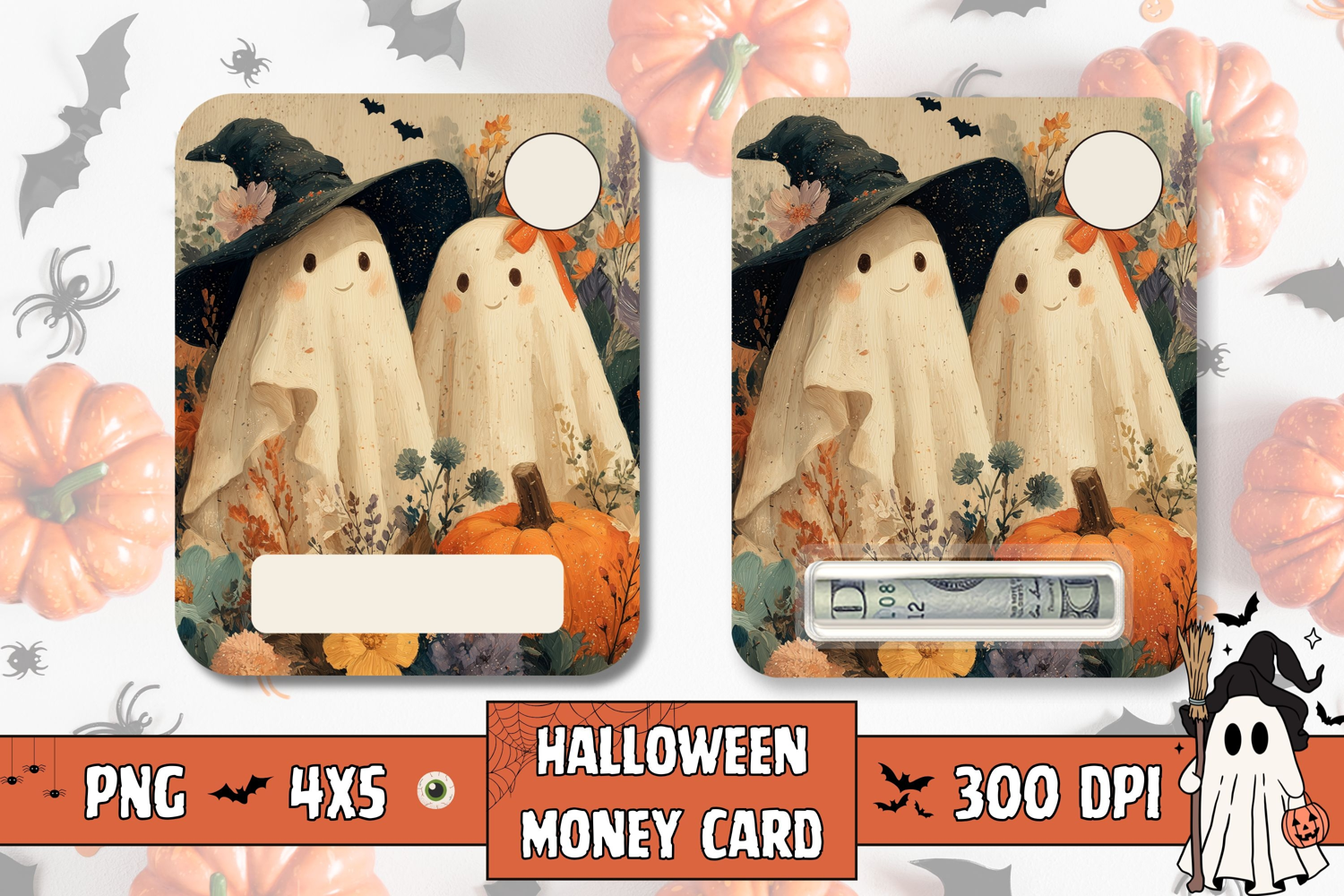 Floral Halloween Money Card Design, Cartoon Money Card example image 1
