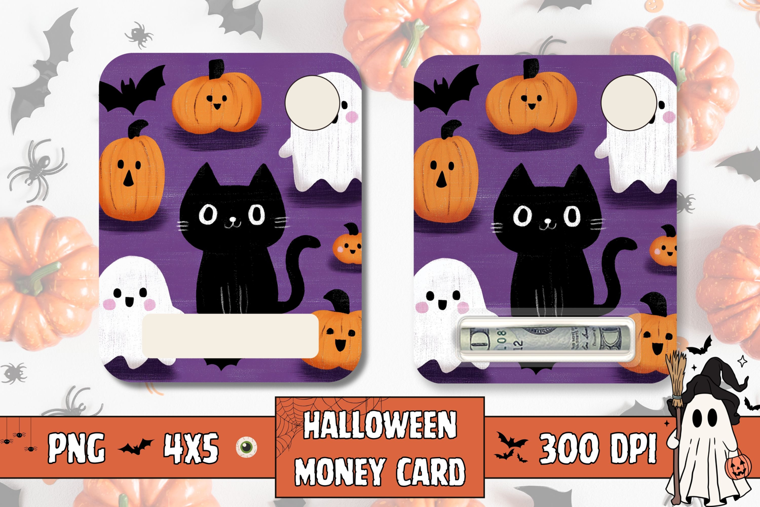 Cartoon Halloween Money Card, Cartoon Black Cat Money Card example image 1