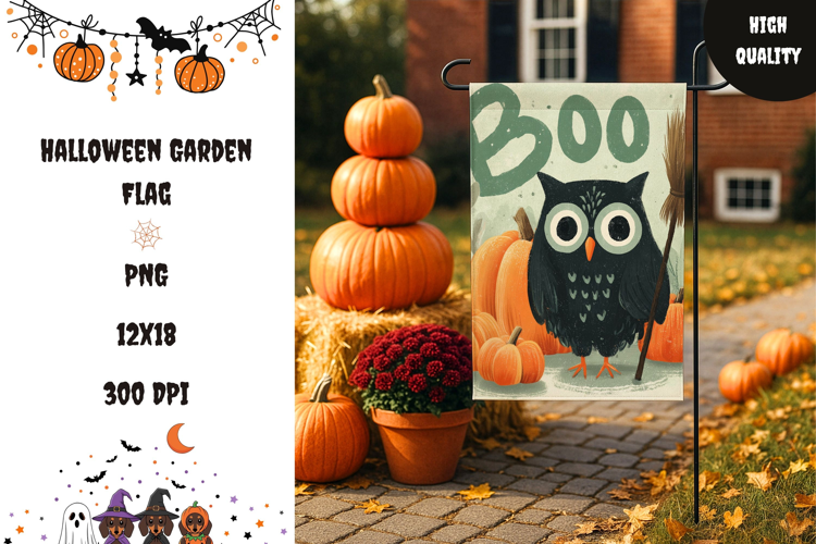Boo Halloween Garden Flag, Happy Halloween Garden Flag example image 1