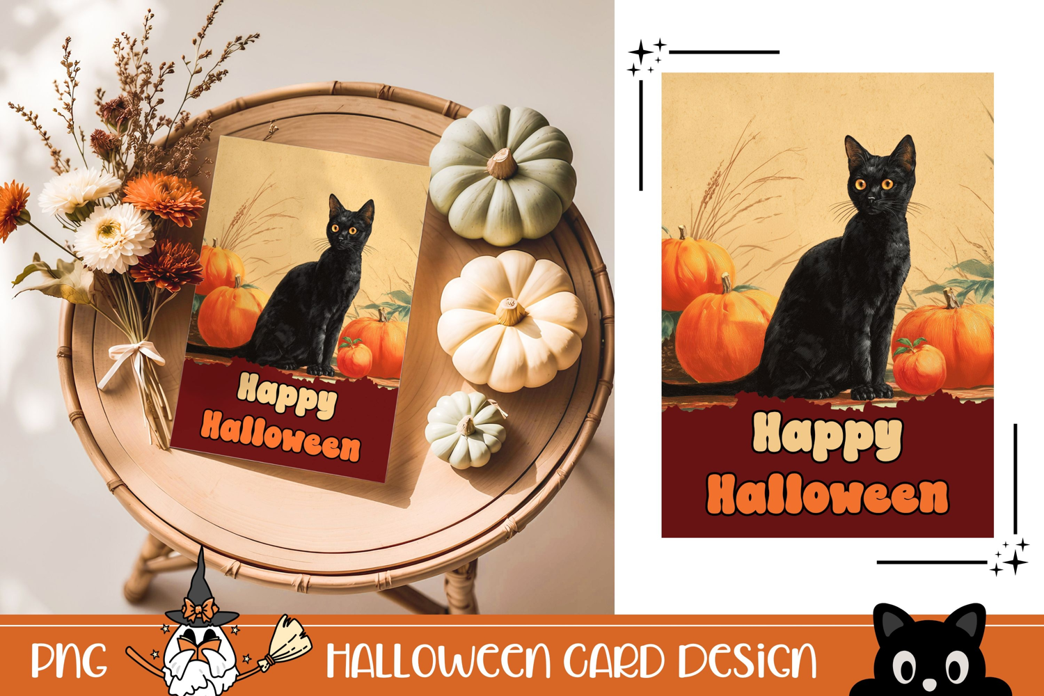 Vintage Halloween Greeting Card, Halloween Cat Wall Art example image 1