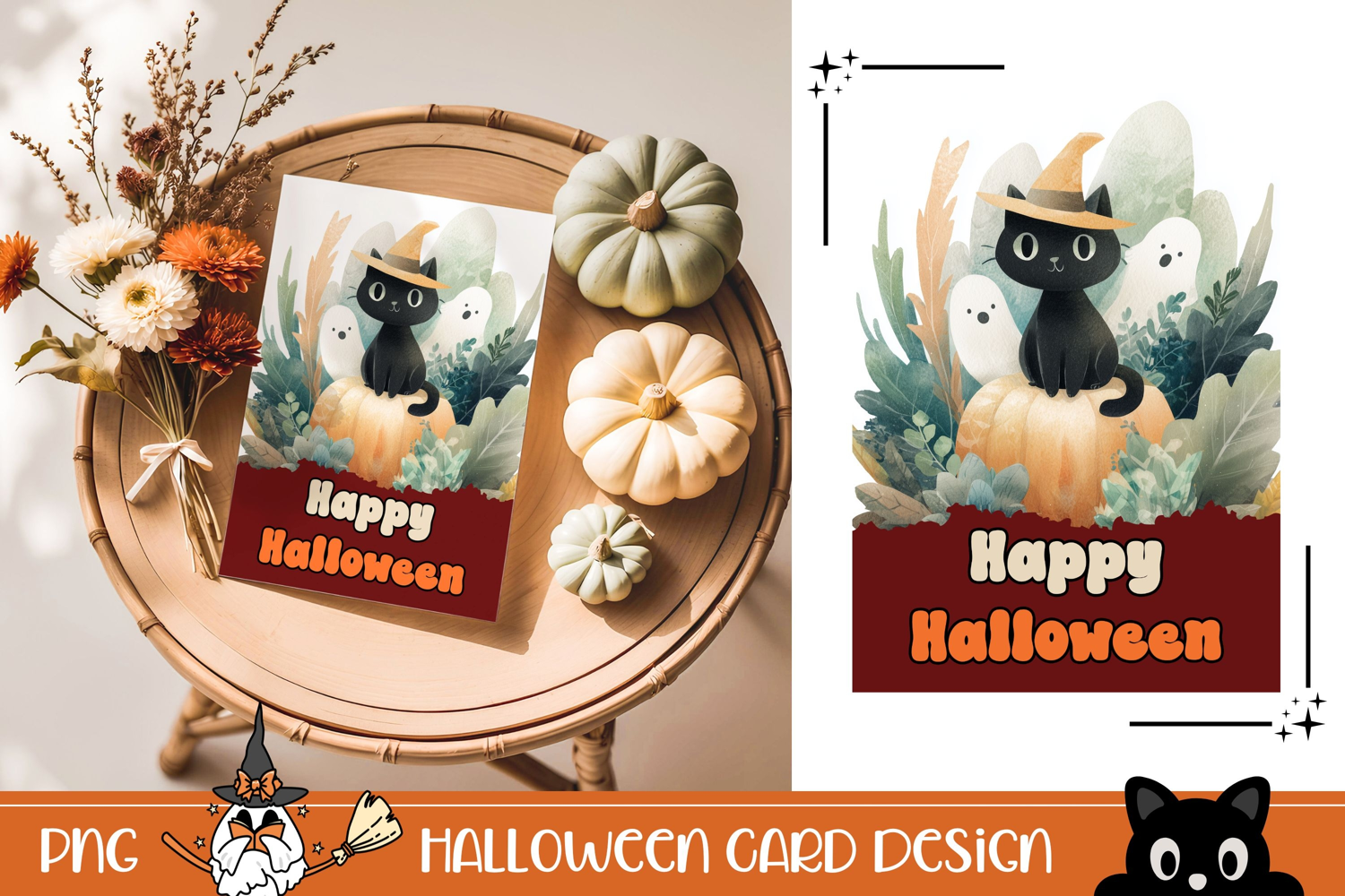Watercolor Halloween Greeting Card, Halloween Cat Wall Art example image 1