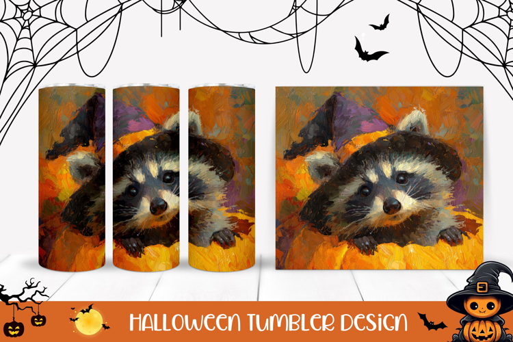 Art Halloween Tumbler Template, Halloween Raccoon Tumbler
