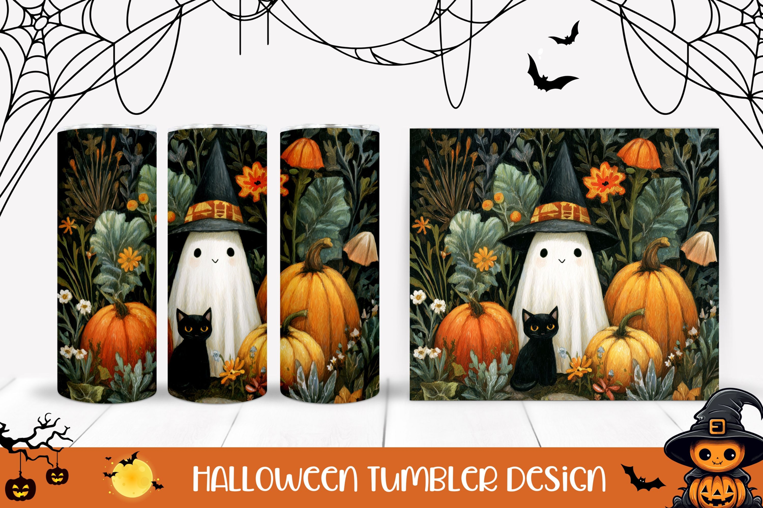 Floral Halloween Tumbler, Halloween Pumpkins Tumbler PNG example image 1