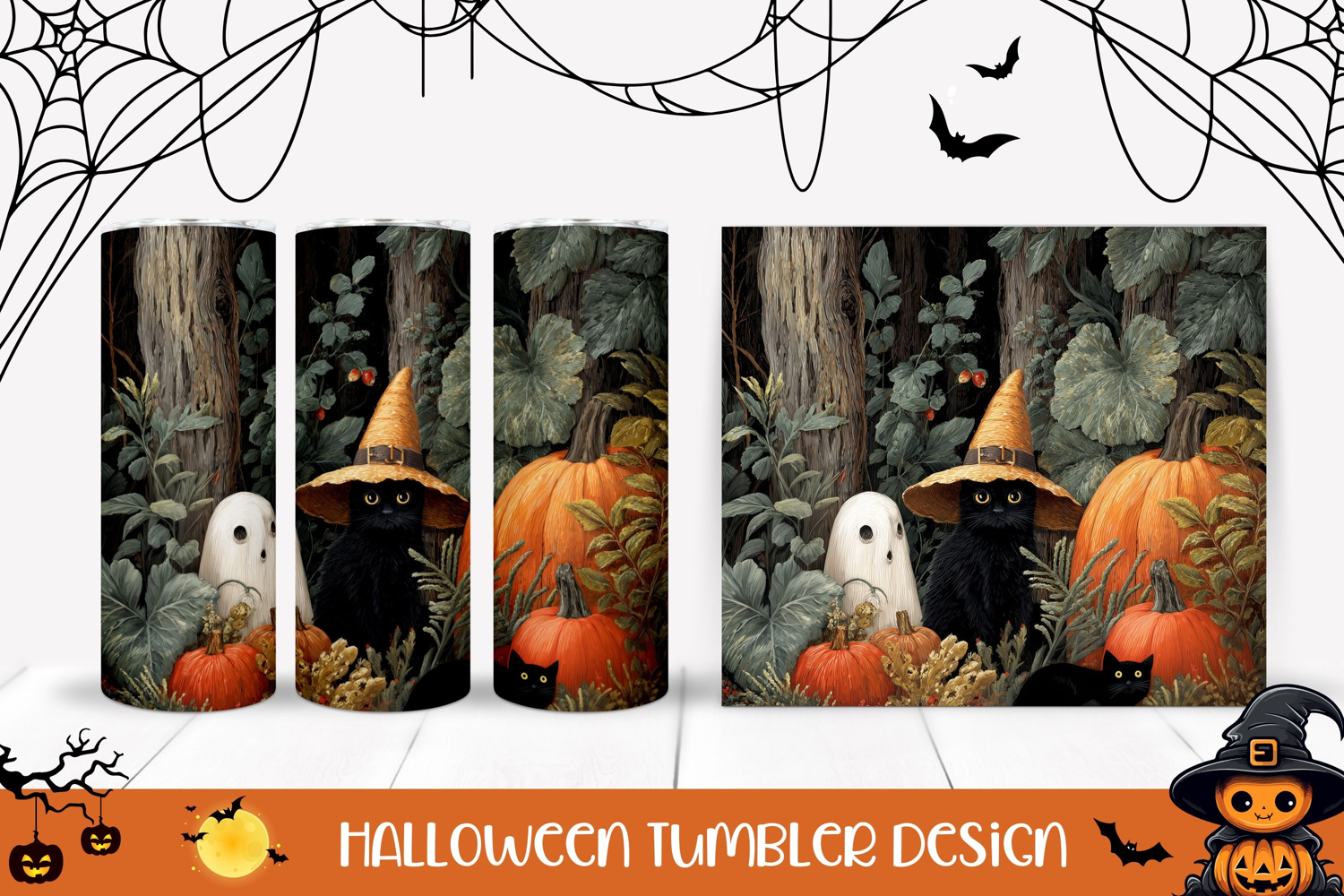 Similar Design Products to Floral Halloween Tumbler, Halloween Black Cat Tumbler PNG