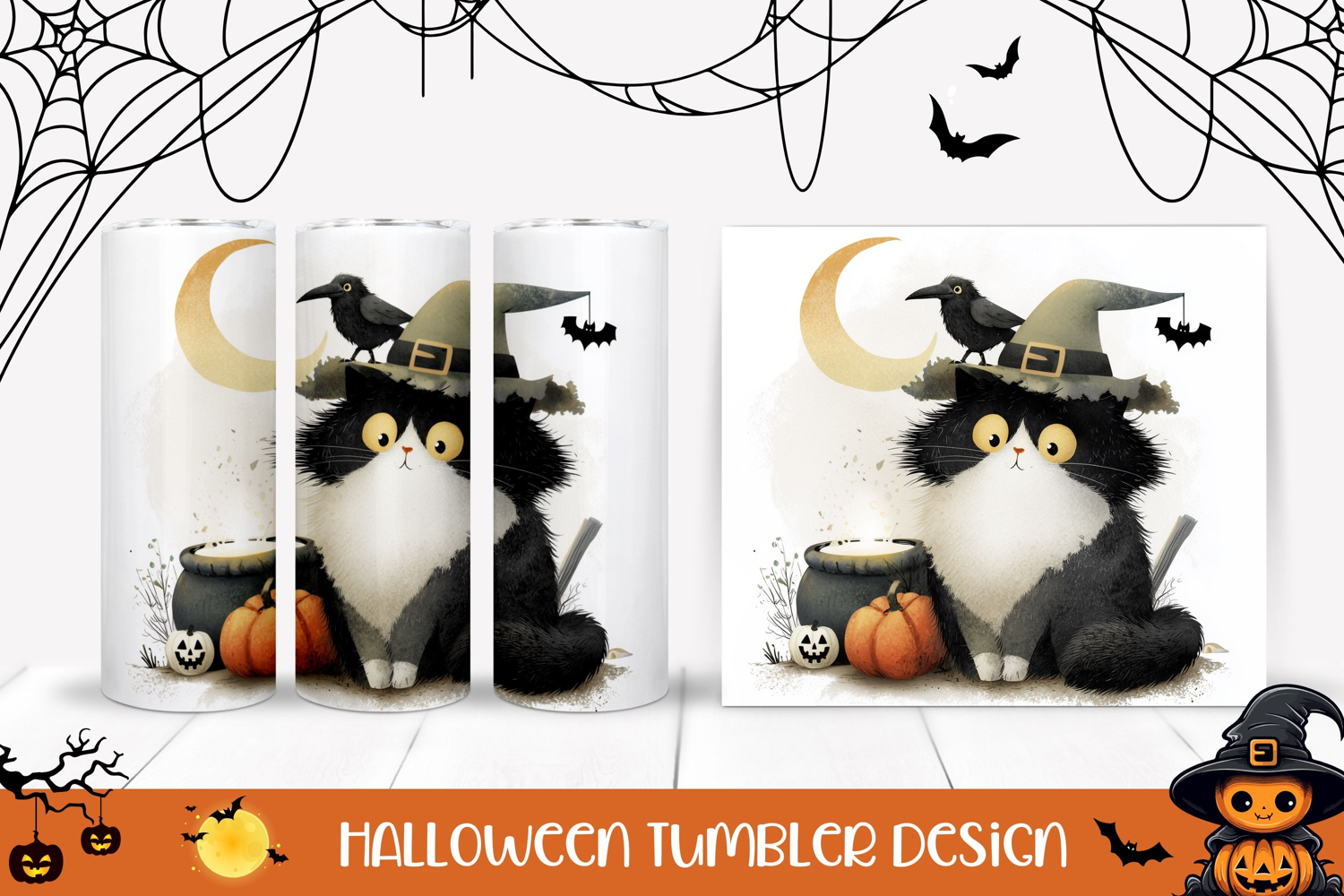 Cartoon Halloween Cat Tumbler, Spooky Halloween Tumbler example image 1