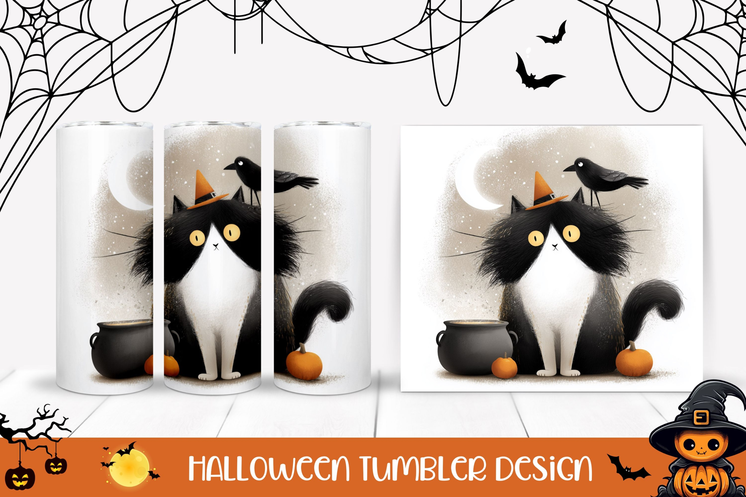 Cartoon Halloween Cat Tumbler, Spooky Halloween Printable example image 1