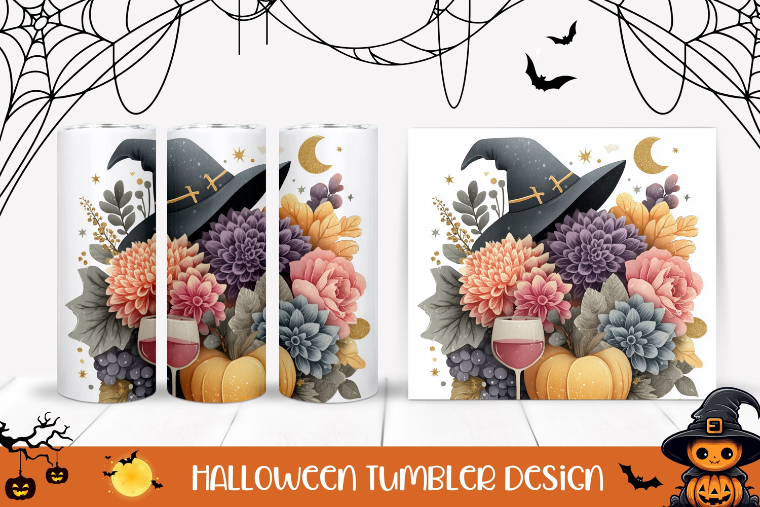 Floral Halloween Hat Tumbler, Floral Pumpkins Tumbler example image 1