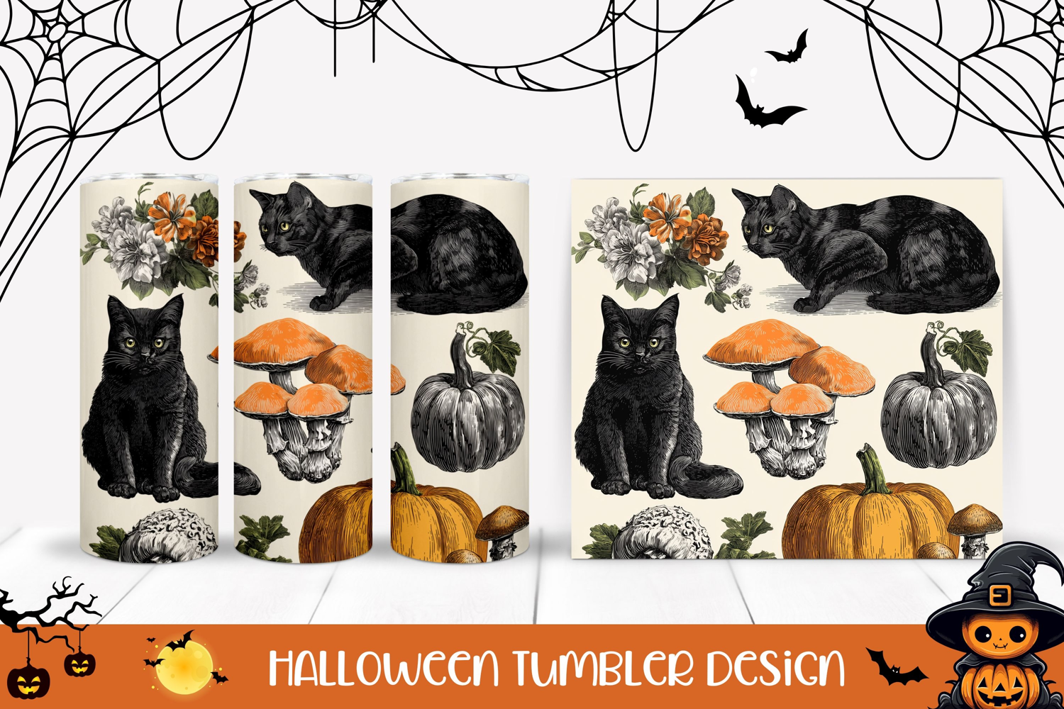 Fall Pumpkins Tumbler, Vintage Black Cat Tumbler Design example image 1