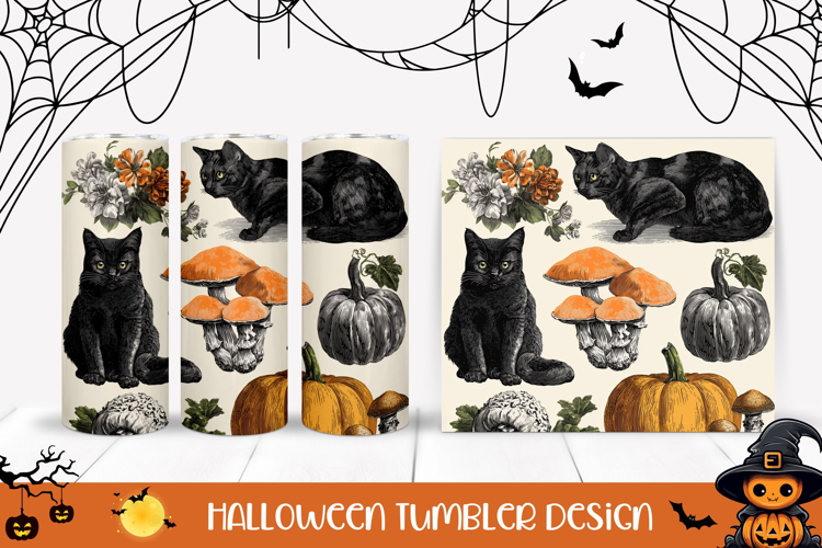 Similar Design Products to Fall Pumpkins Tumbler, Vintage Black Cat Tumbler Design